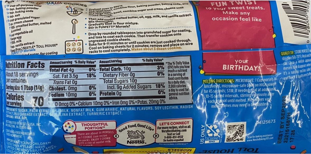 YOU WILL RECEIVE ( 1 ) FACTORY SEALED Bag Nestle Toll House FUNFETTI Morsels Baking Vanilla Chips 9 oz Bag FREE SHIP
